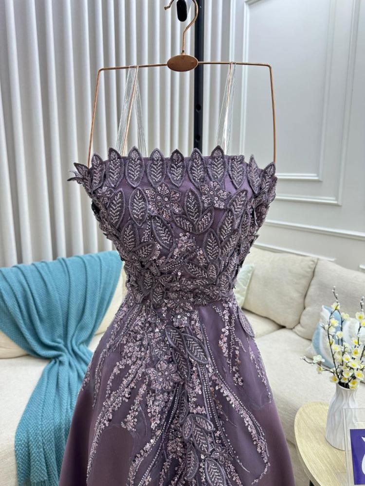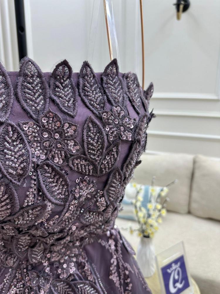 فستان سهره كحلي و موف شك يدوي راقي من متجر جوهره QU