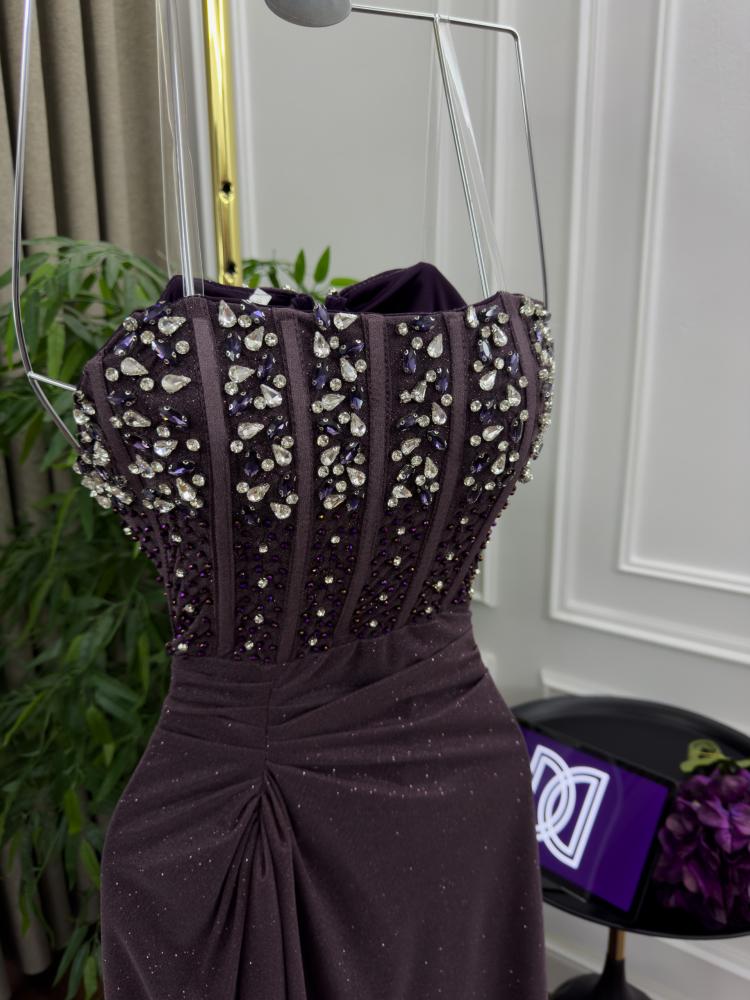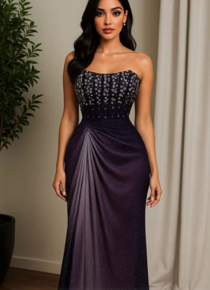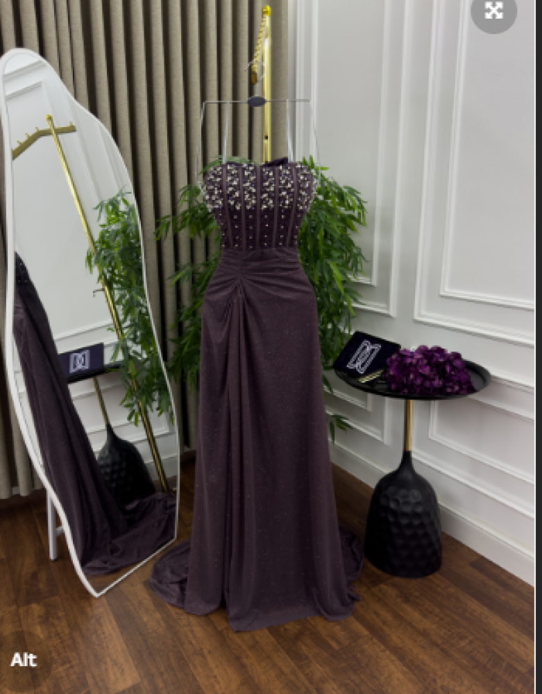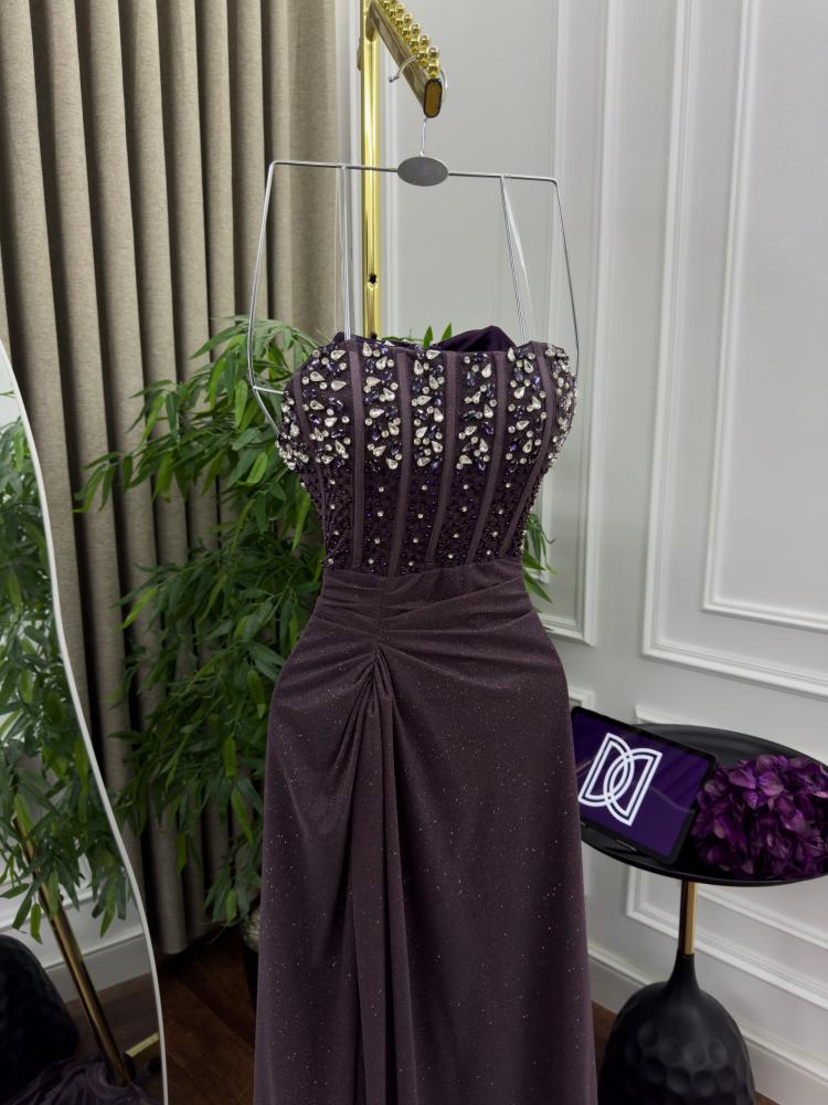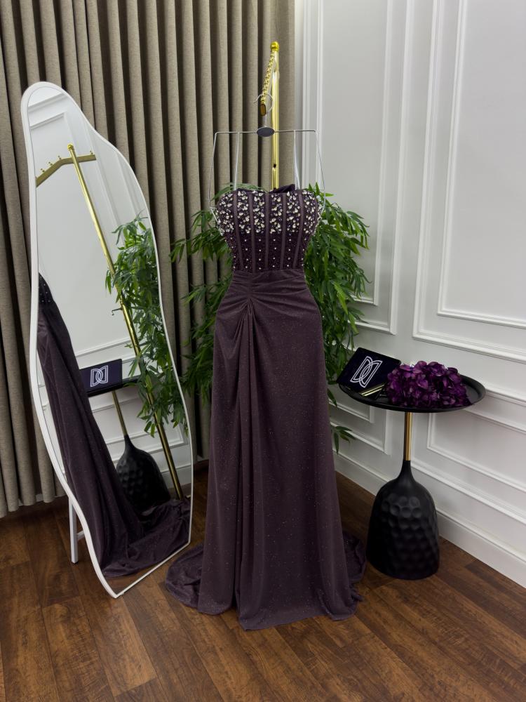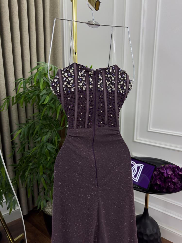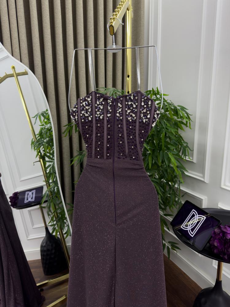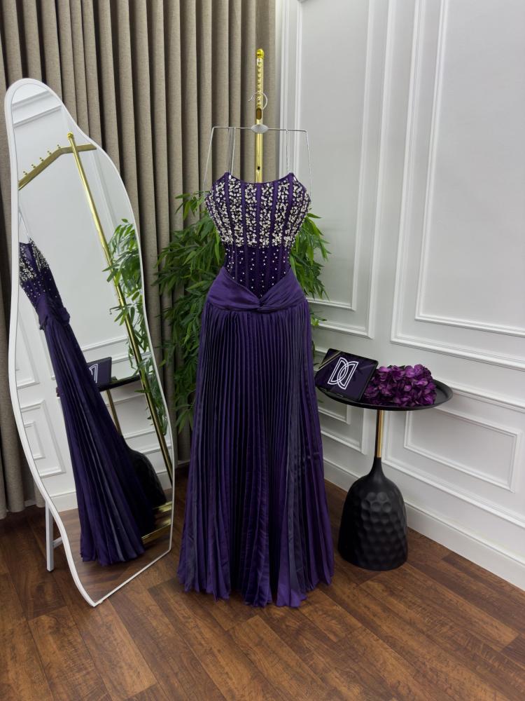 فستان سهره اللون ليلكي وب نفسجي و اصفر شيفون لمعه تطريز يدوي من متجر جوهره D