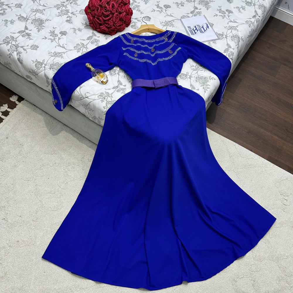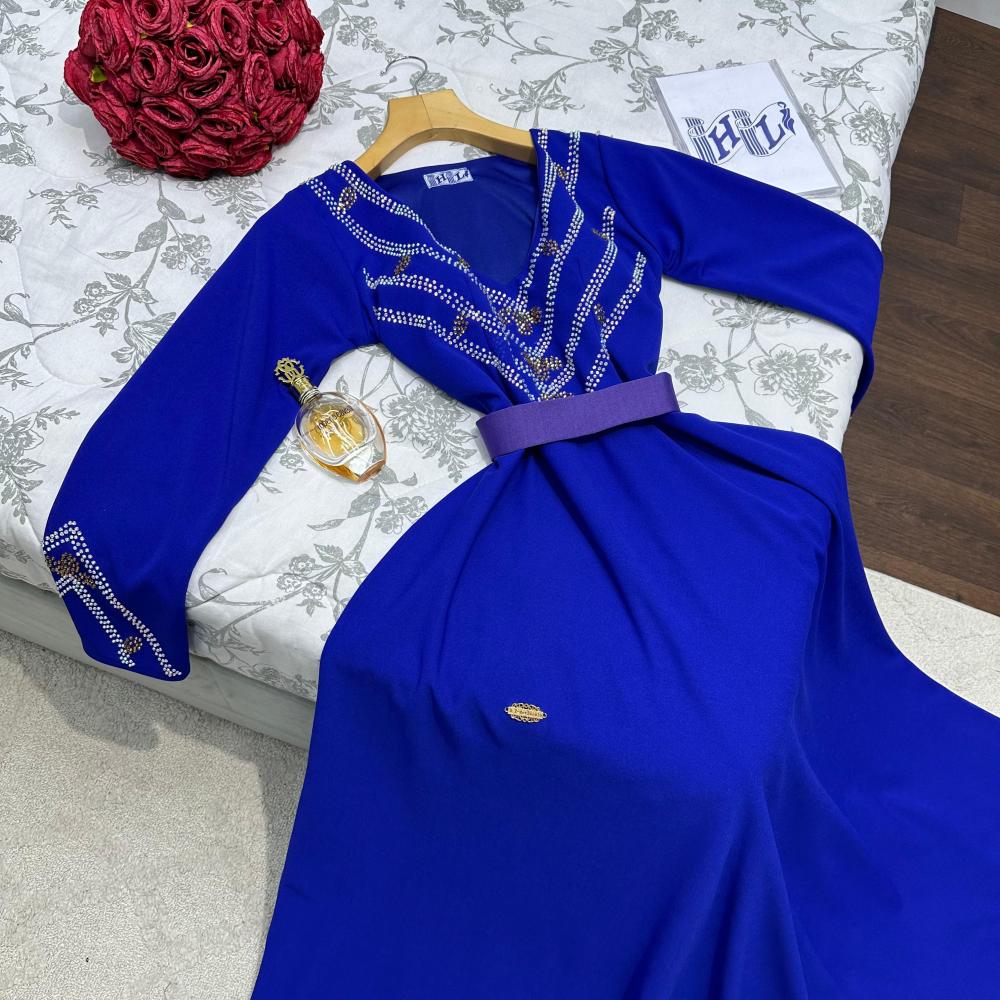 فستان اللون نيلي الخـامة كريب استرتش فصوص الاصلي من متجر جوهره HL