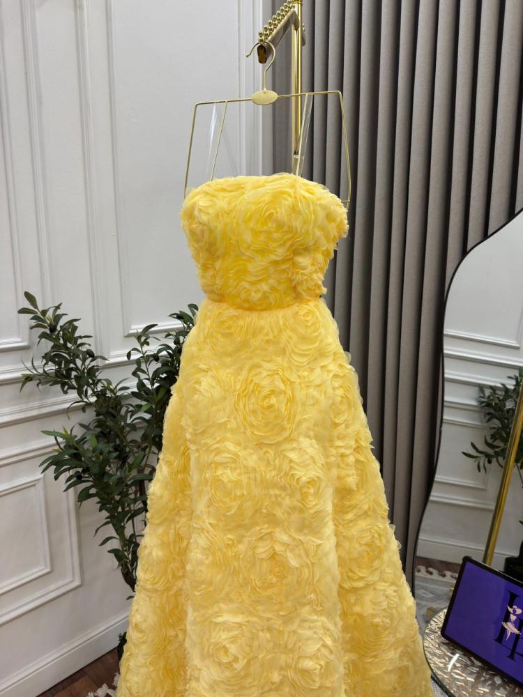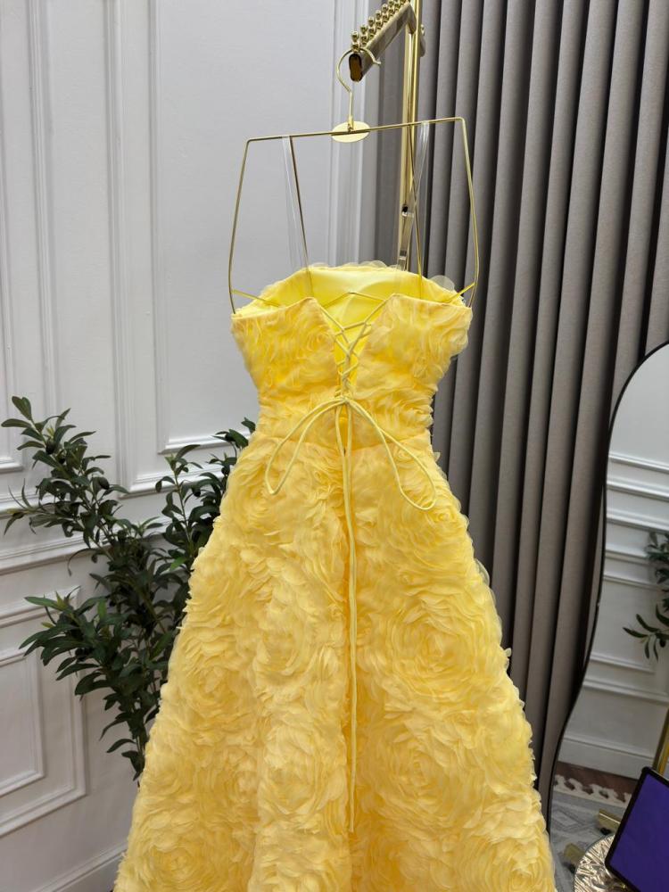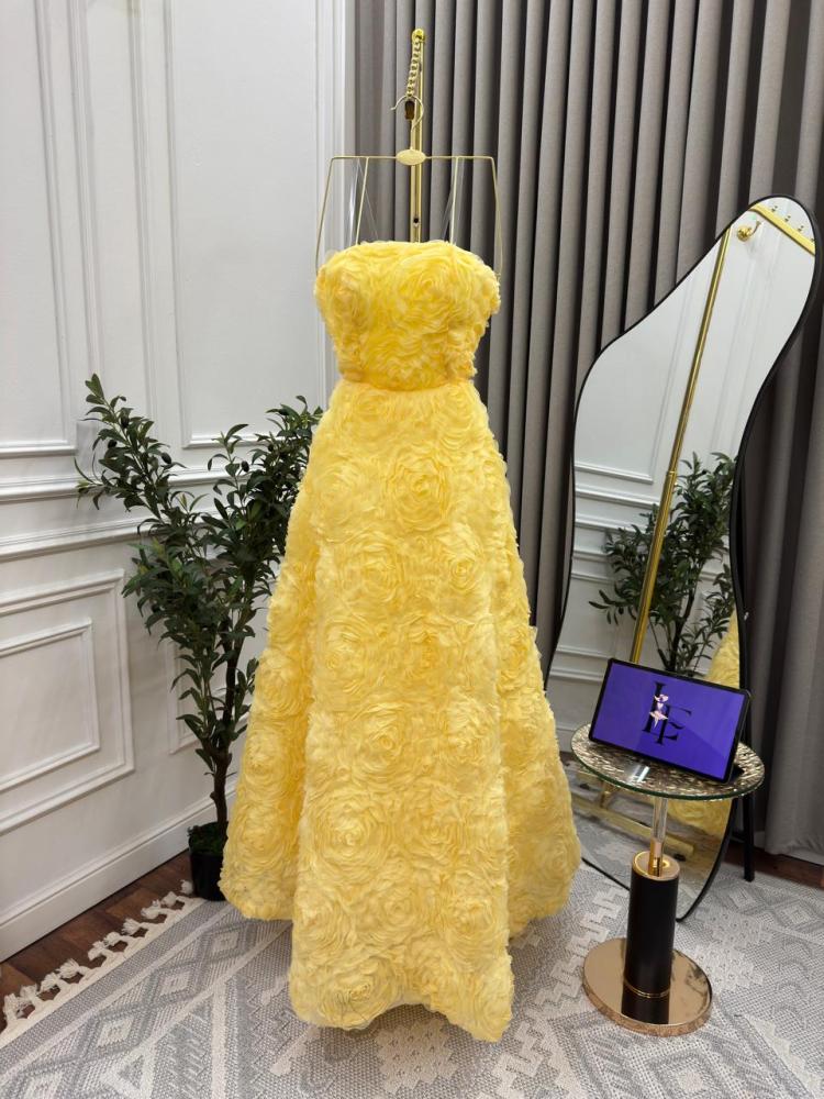 فستان سهره اللون ليموني كلفه ورود من متجر جوهره LF