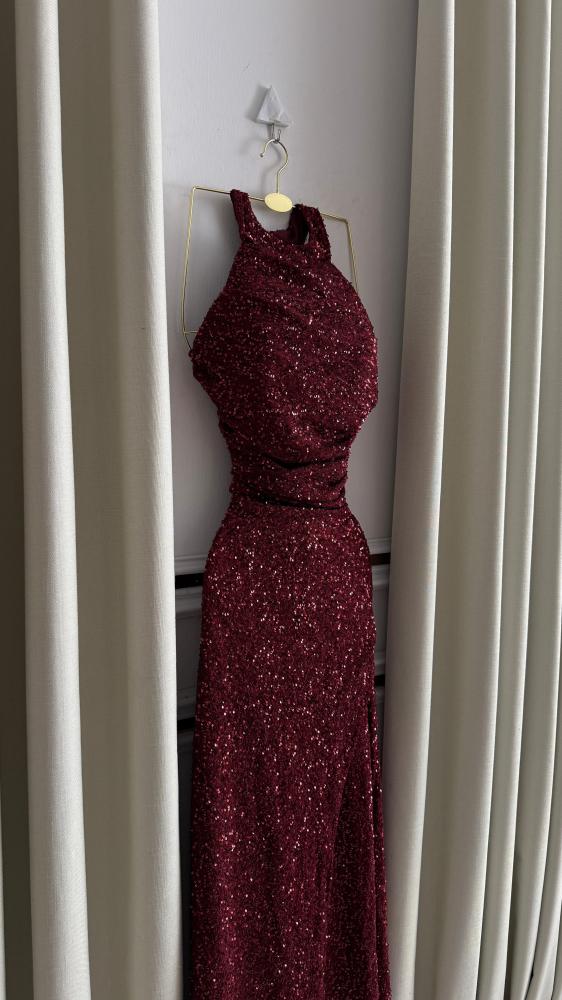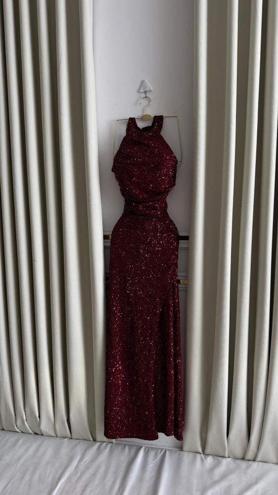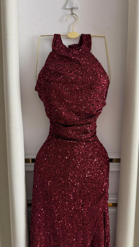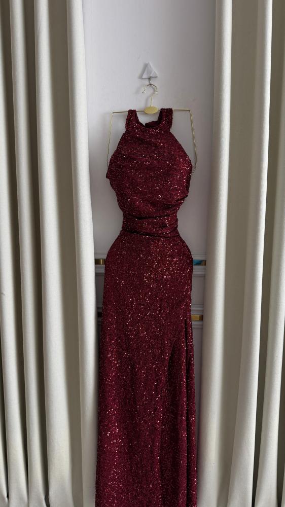 فستان سهره اللون برغندي اسود من متجر جوهره MN