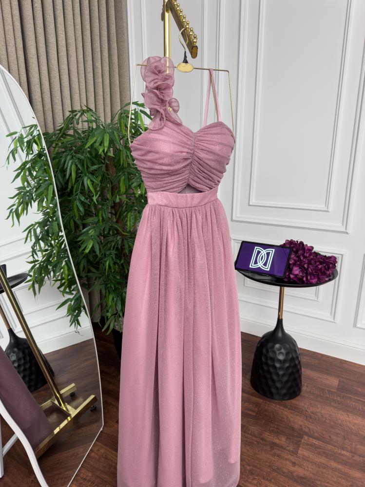 فستان سهره وردي شيفون جورجات لمعه من متجر جوهره