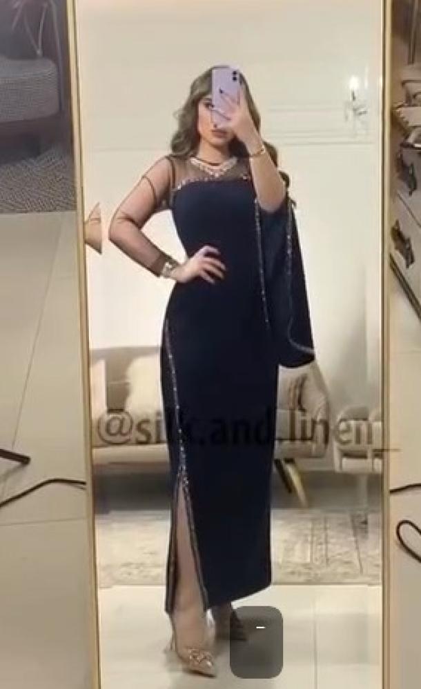 فستان ناعم اللون كحلي الخـامة // كريب