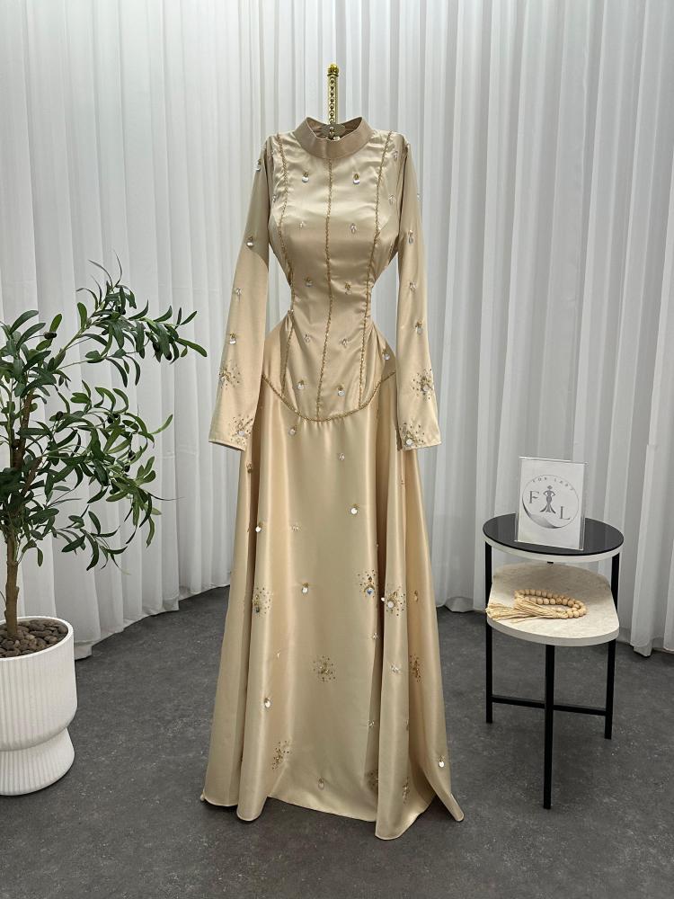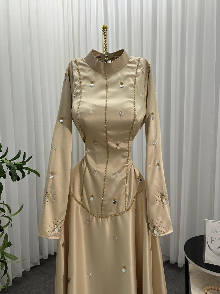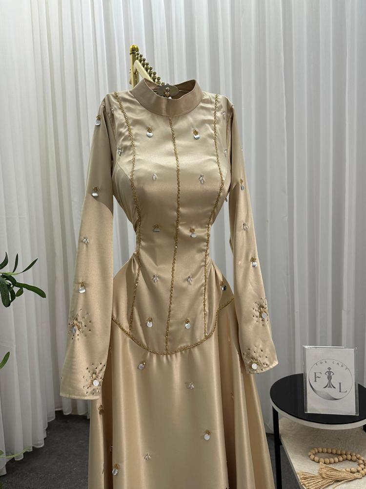 فستان سهره اللون بيج تفته استرتش من متجر جوهره FR
