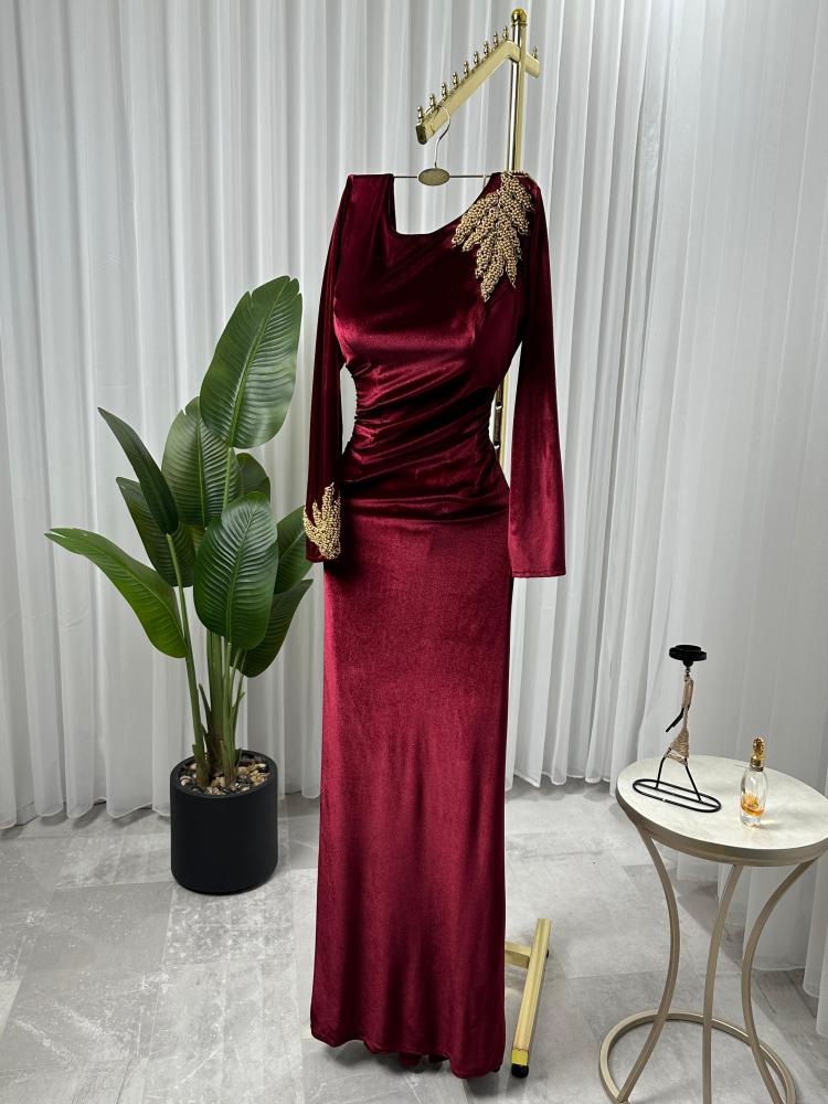 فستان سهره اللون برغندي مخمل كوري الاصلي من متجر جوهره NW
