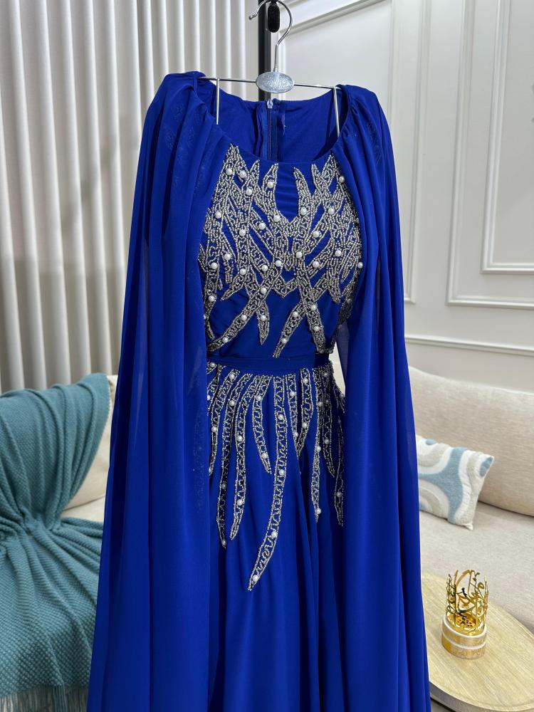 فستان سهره اللون سود عودي. نيلي شيفون دبل كلوش تطريز راقي من متجر جوهره DN
