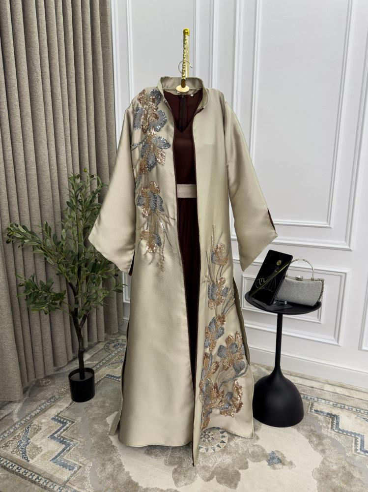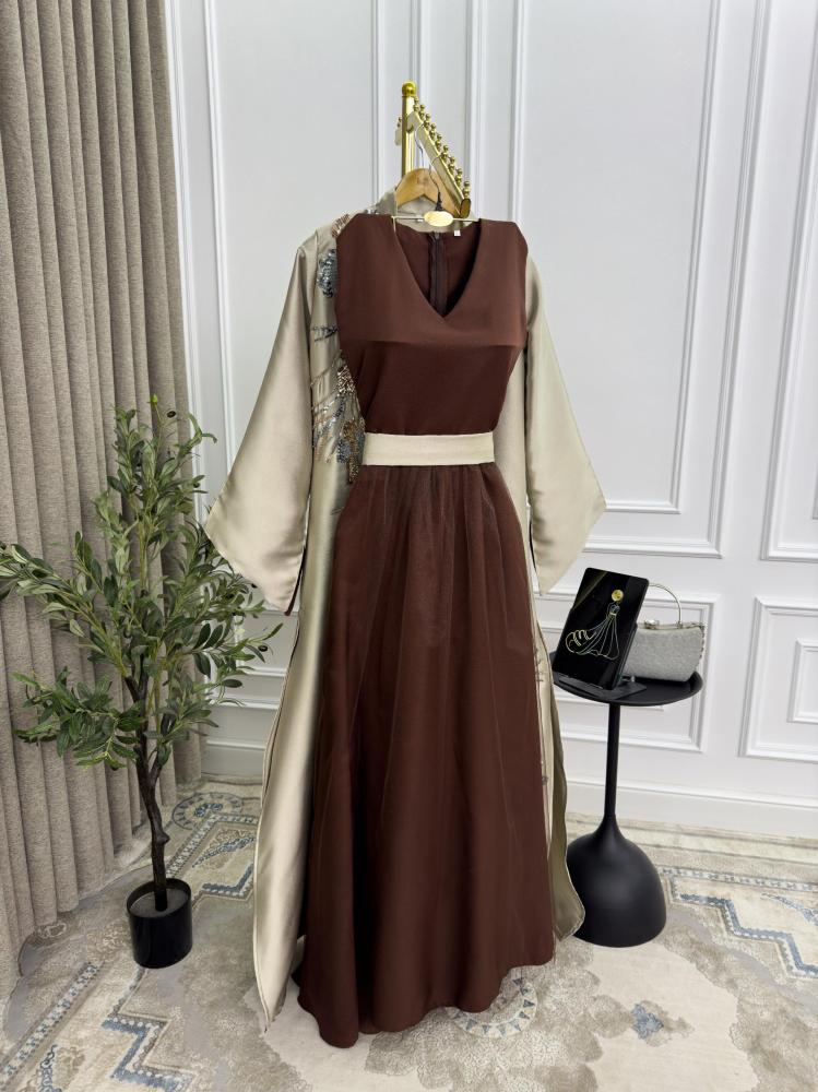 جلابيه بني على بيج باربي تُل + ميكادو فخم