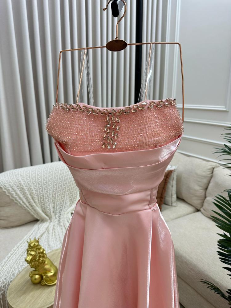 فستان سهره اللون زهري ميكادوا لمعه اصلي درجه اولى تطريز كريستال راقي TR