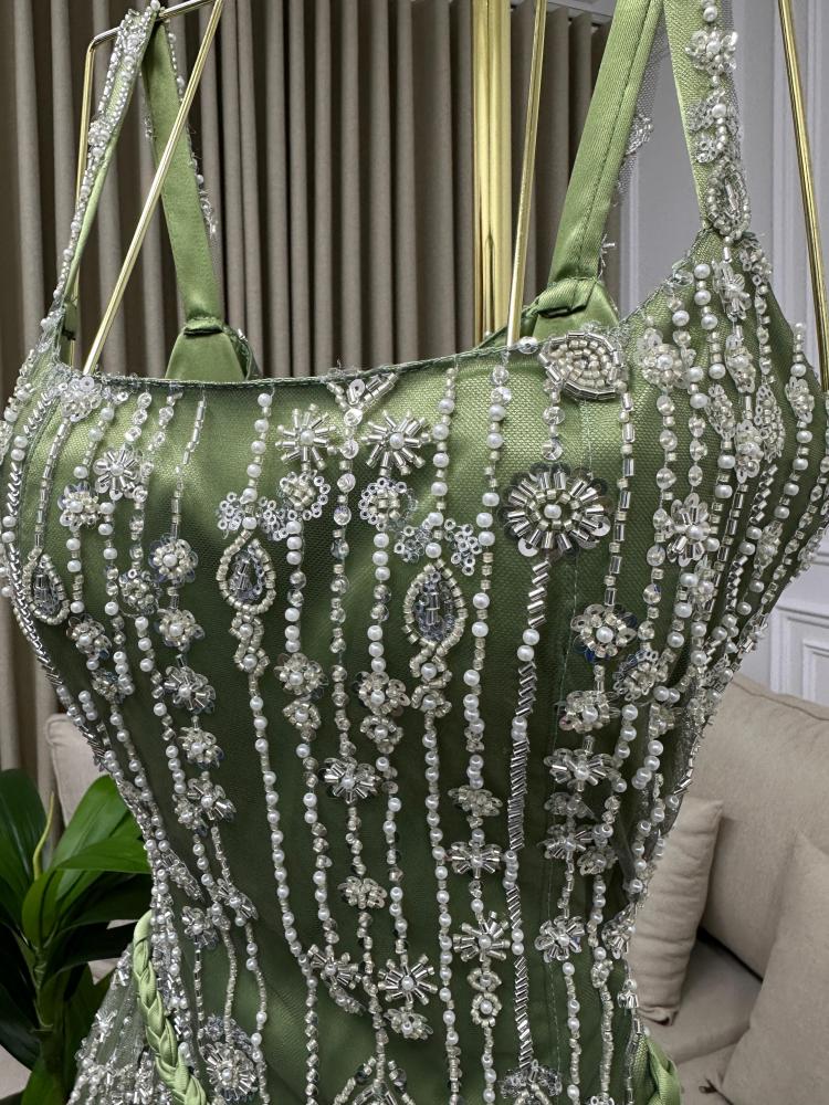 فستان سهرهالالوان : تفاحي المقاسات برقم : 1/2/3/4/5المقاسات بالحرف :S/M/L/XL/XXLالخامه :قماش سهره راااقي خرز شك كامل + مبطن تل ناعم+ مبطن تفته استرتش