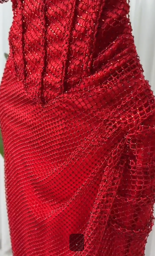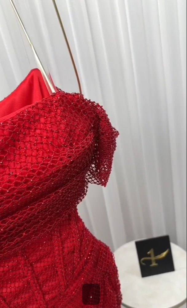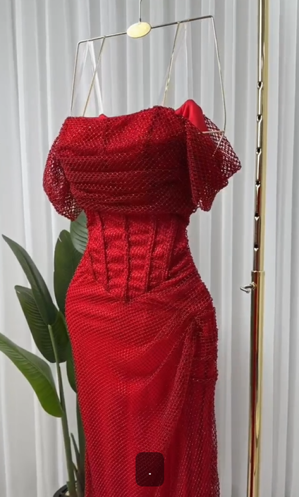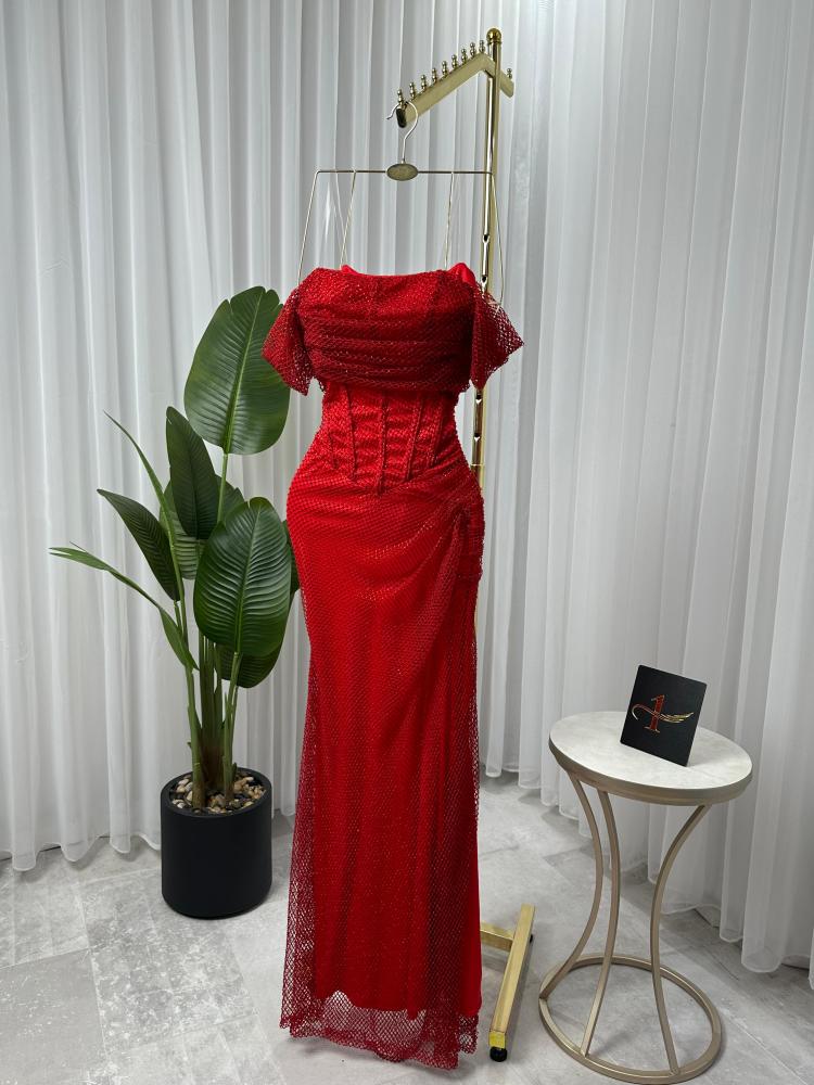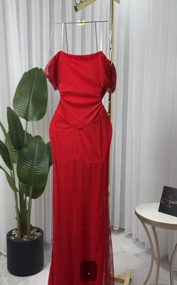 فستان ناعم اللون احمر نوع القماش سهرة بفصوص NO