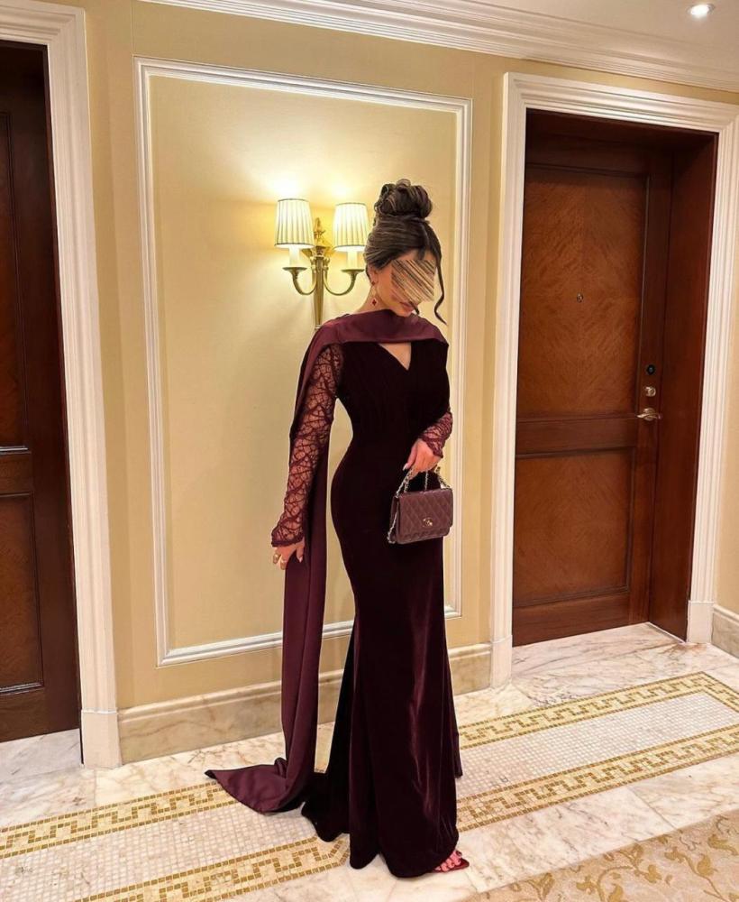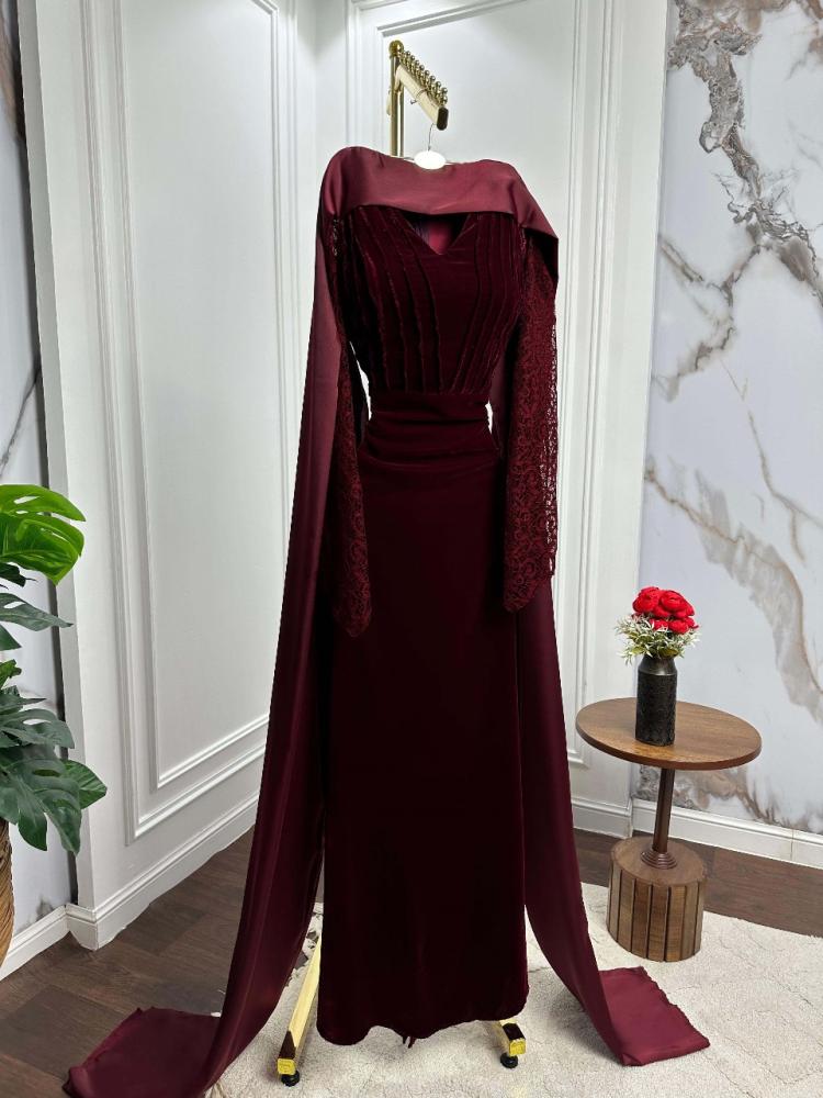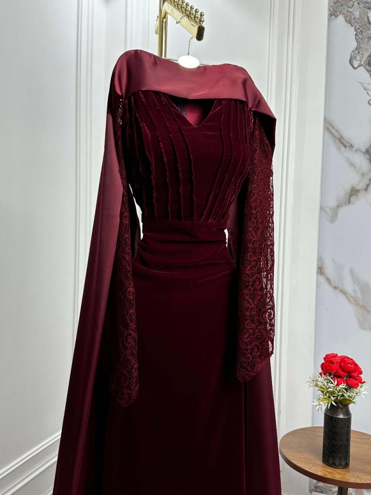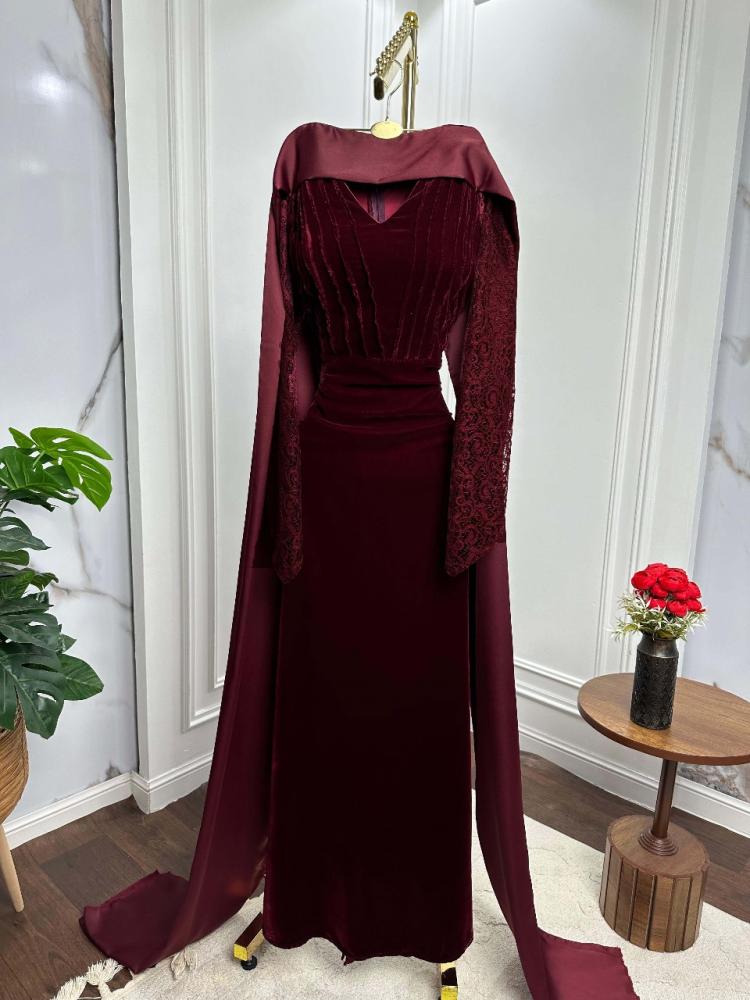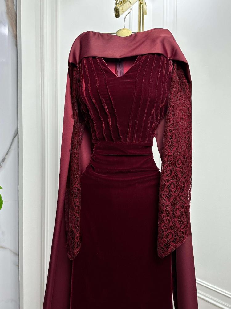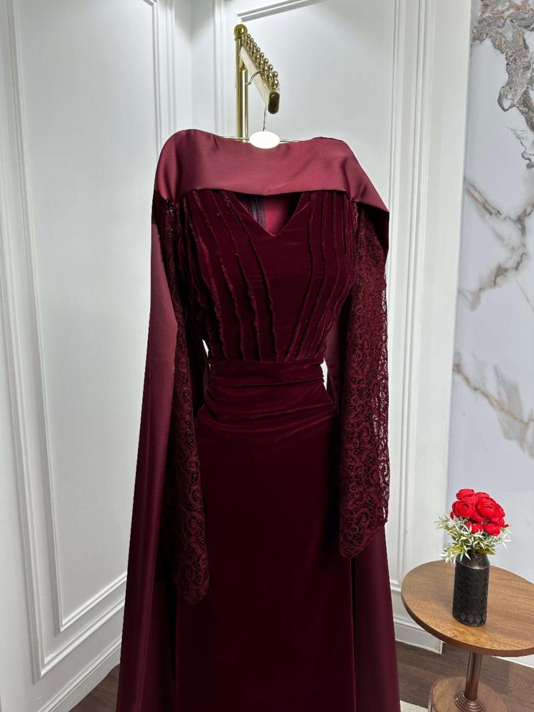 فستان سهره اللون برغندي مخمل كوري دانتيل تفته من متجر جوهره QN