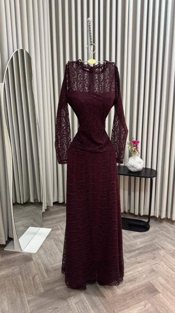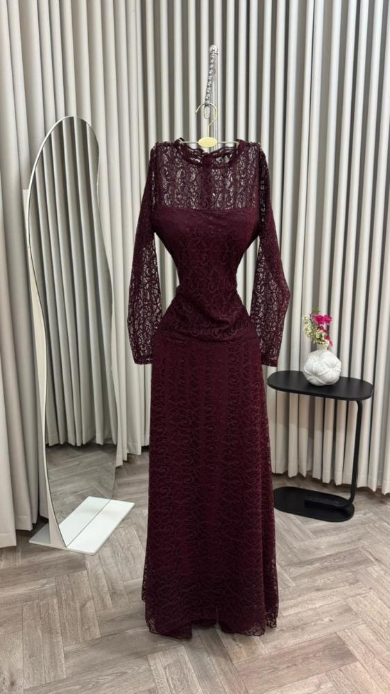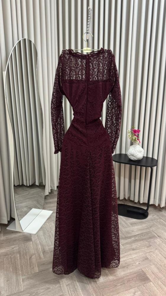 فستان سهره اللون عنابي دانتيل دبل كلوش من متجر جوهره BR