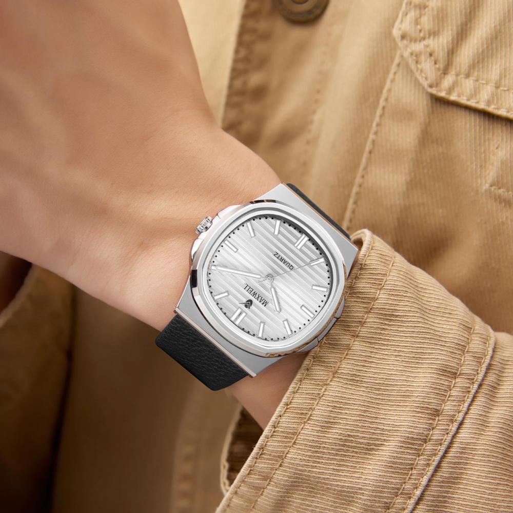سعر شامل الضريبهساعة رجالية انيقةماكسويل رجالي استيلمكينه سنغافوريمع ضمان سنتين يشمل مكينه ومويه وبطاريه ولونالملحقات علبه وكيس باسم الماركه