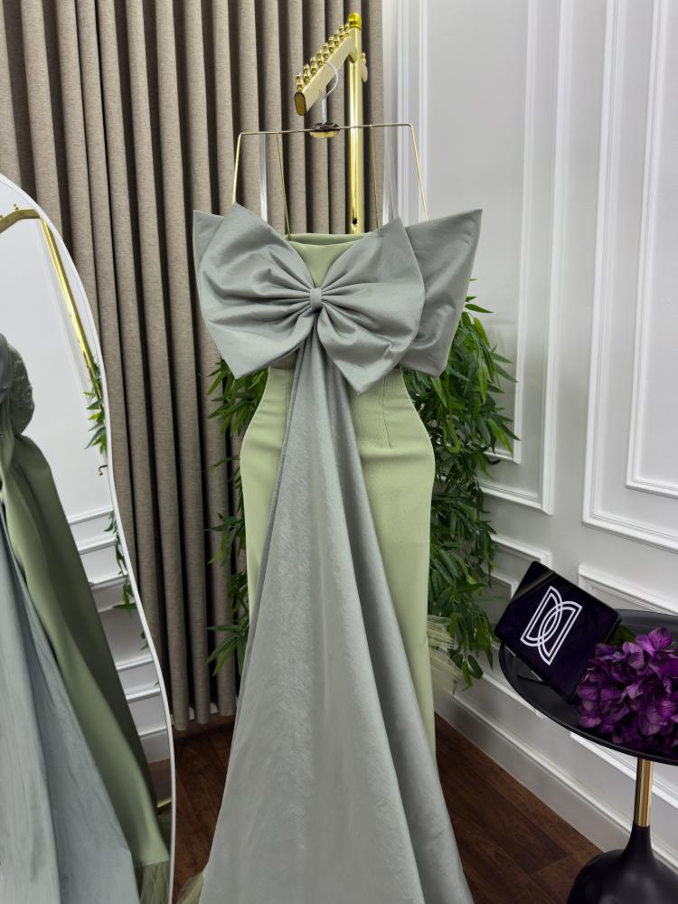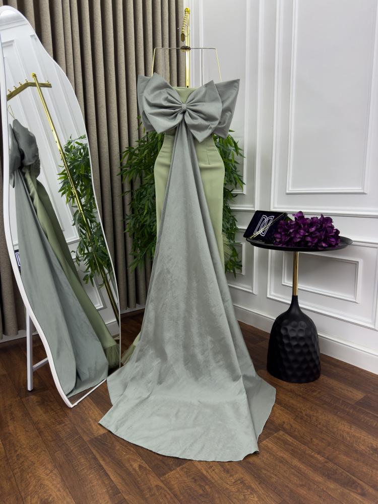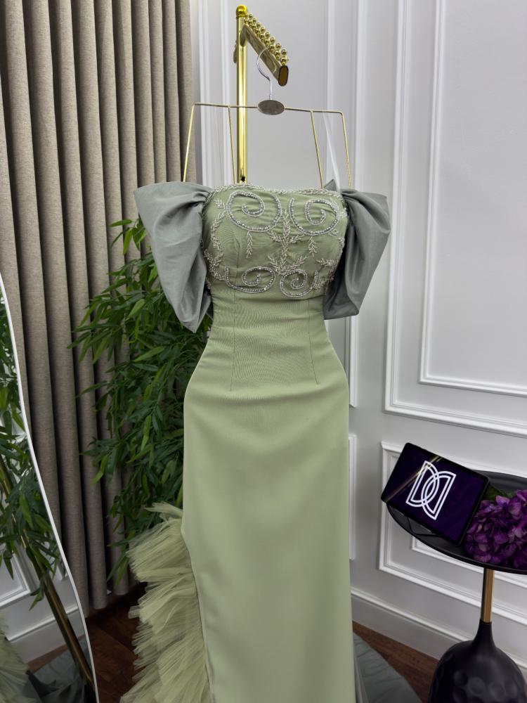 فستان سهره تفاحي باربي وذيل شانطون تطريز يدوي الشغل الآصلي من متجر جوهره