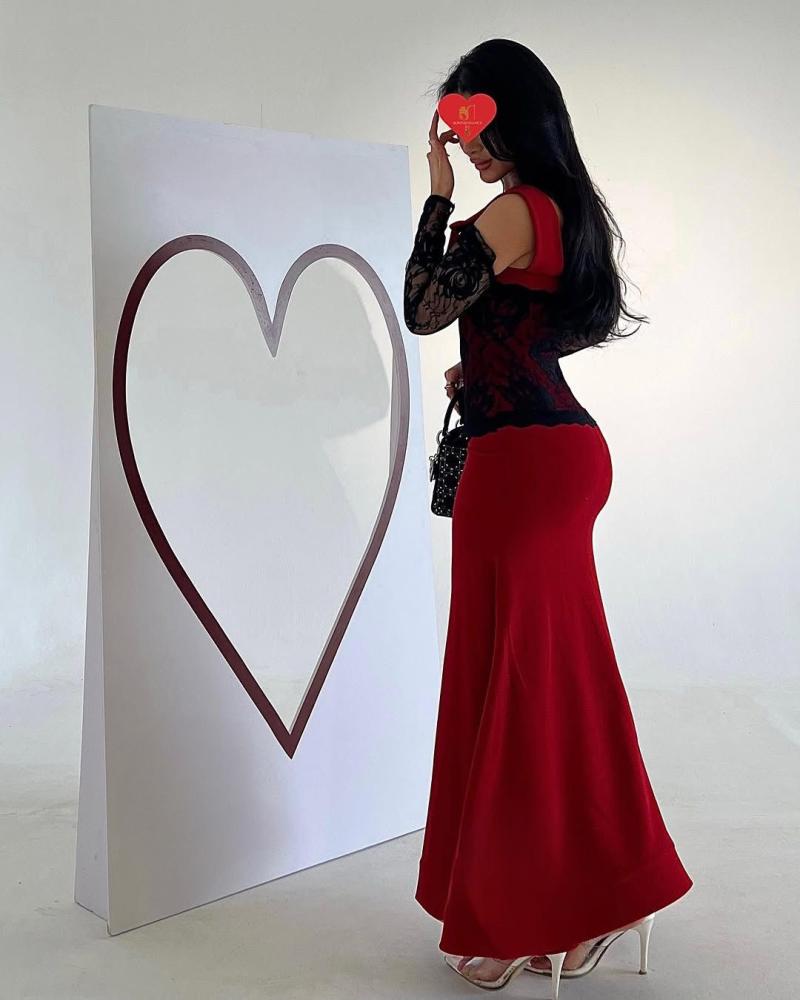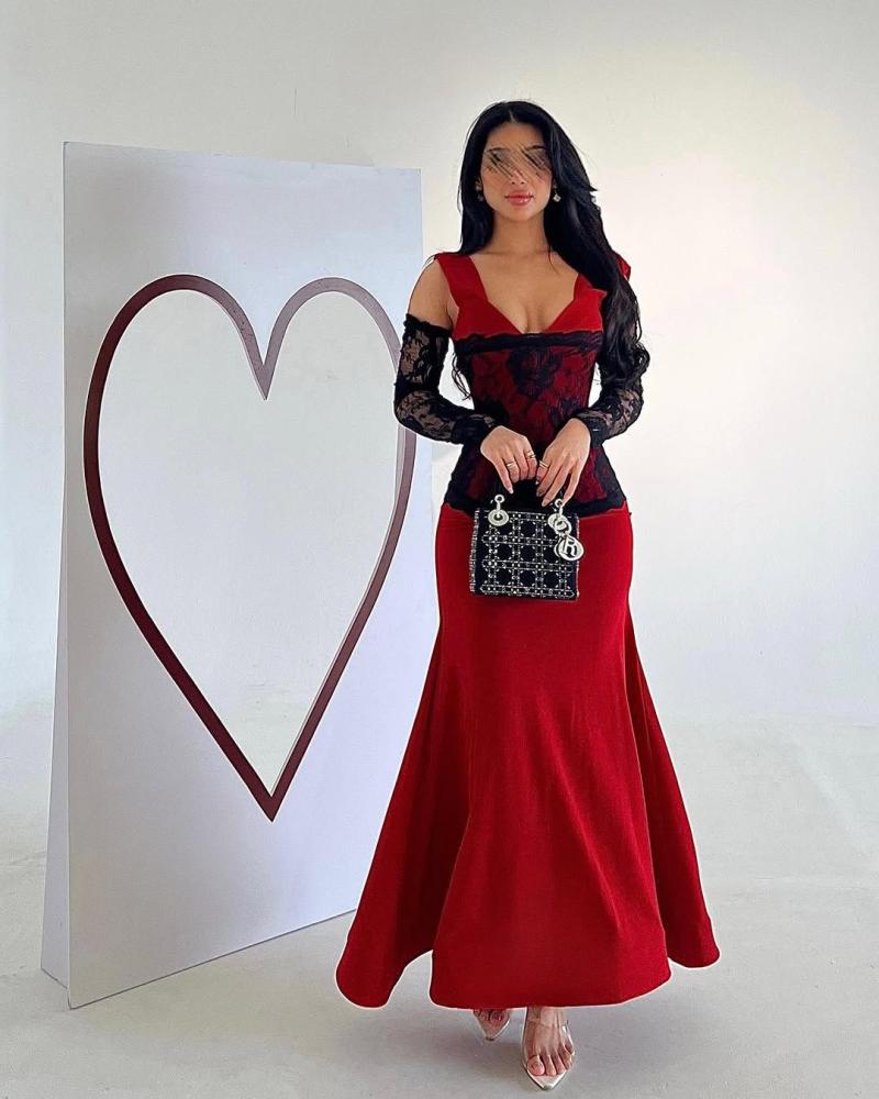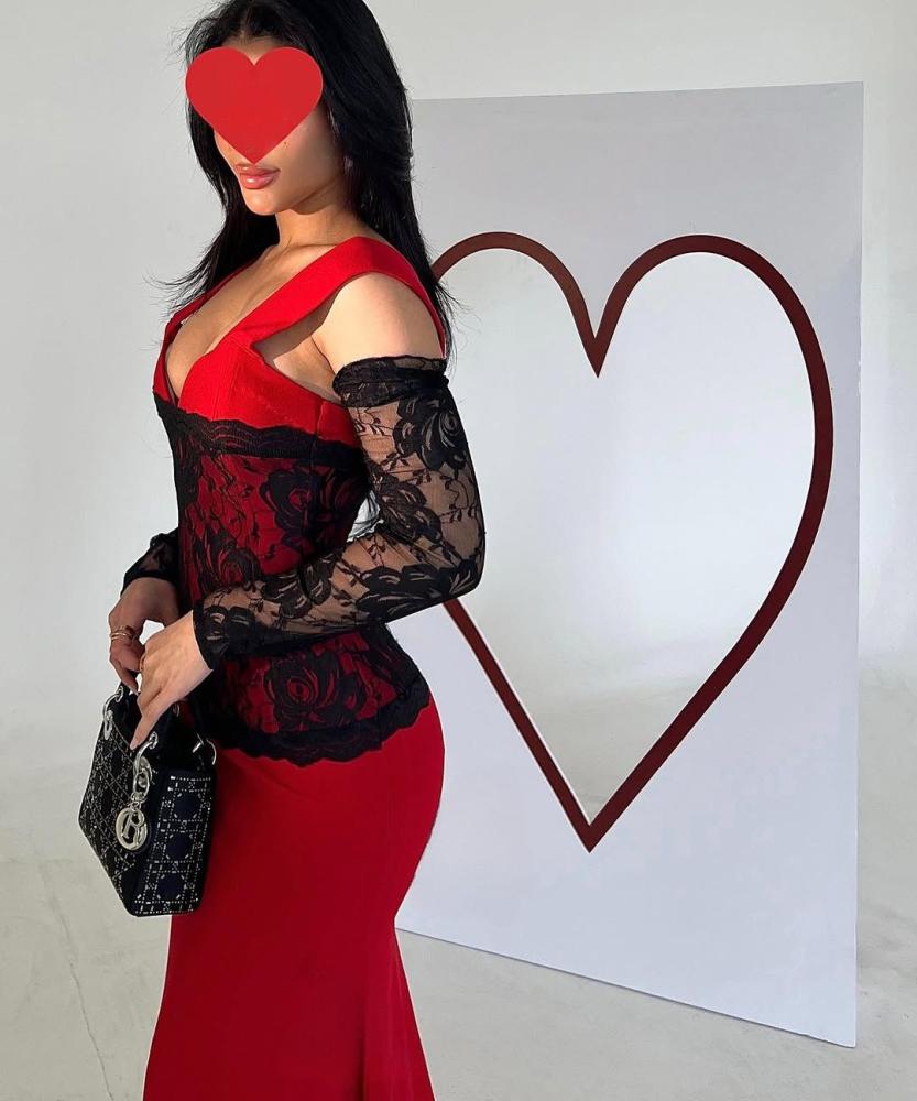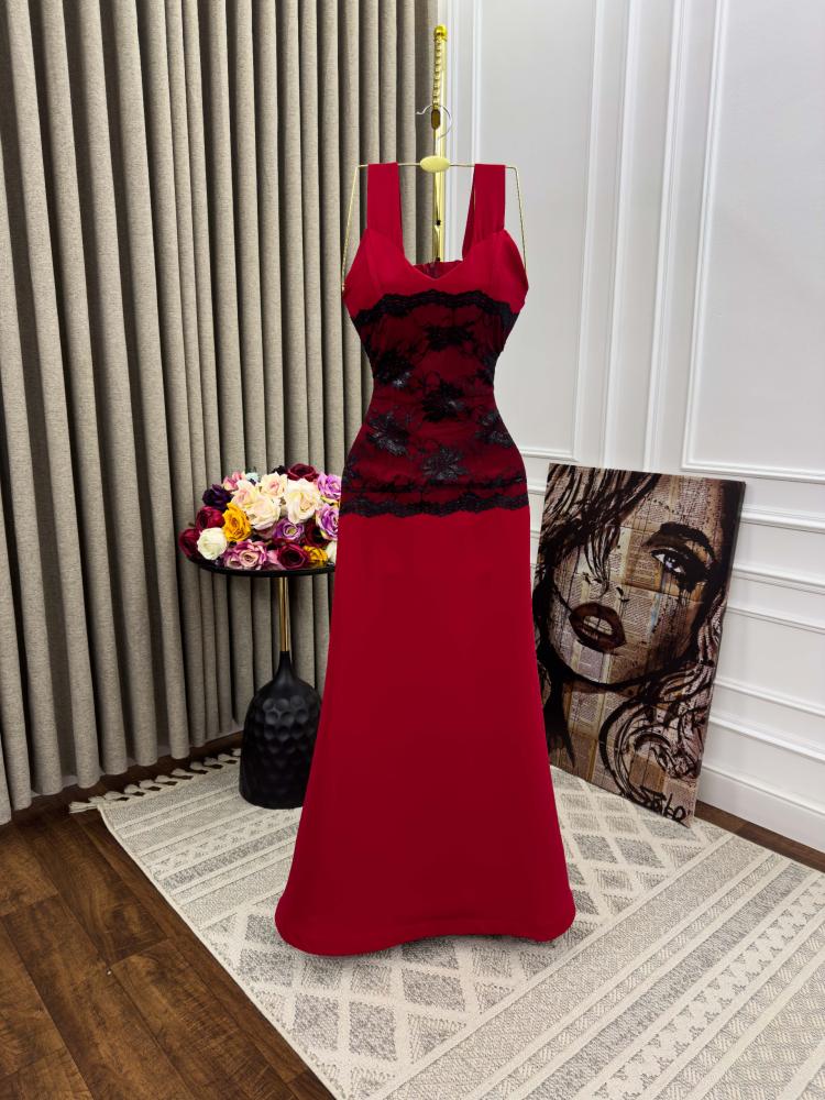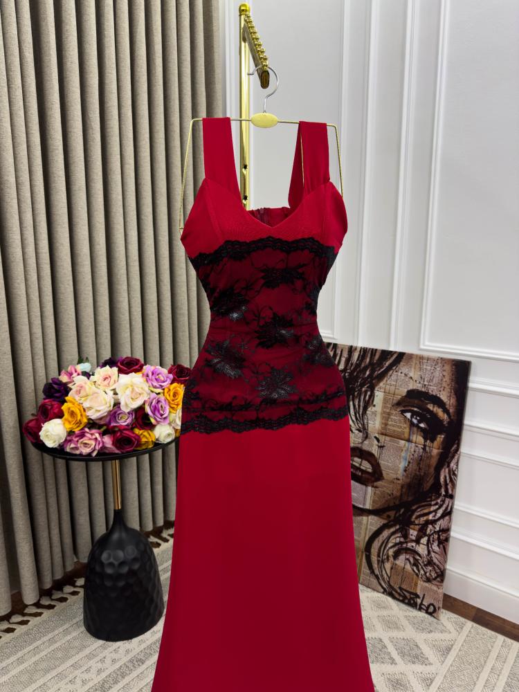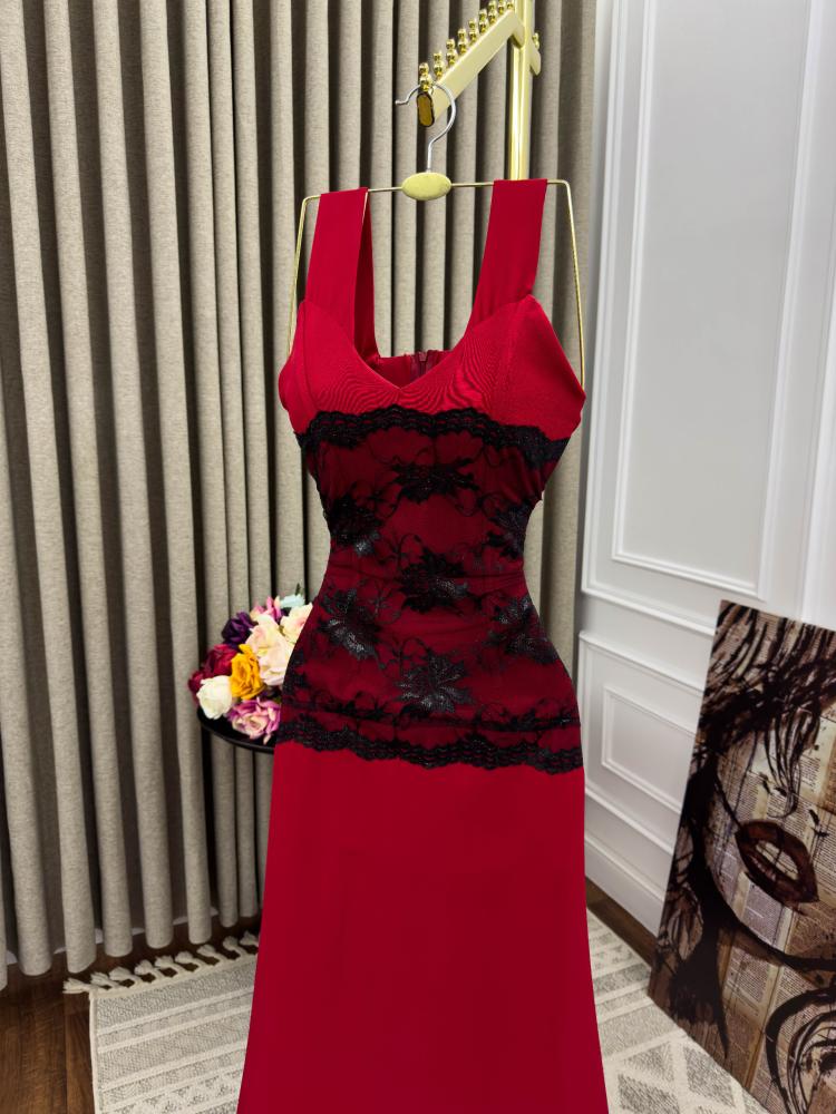 فستان ناعم اللون احمر الخامه:باربي دانتيل