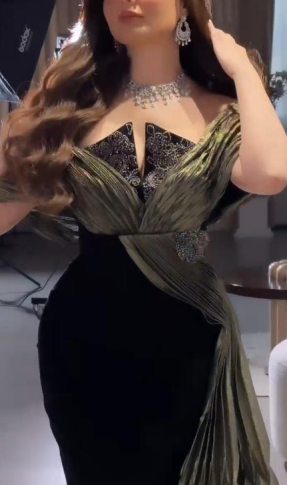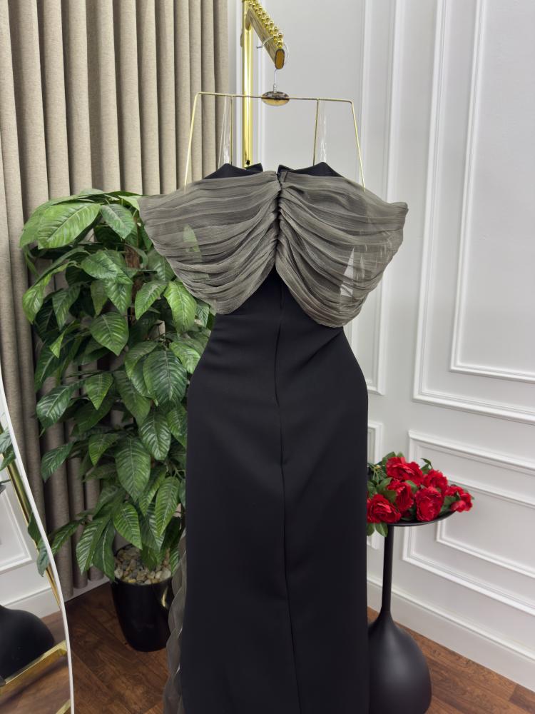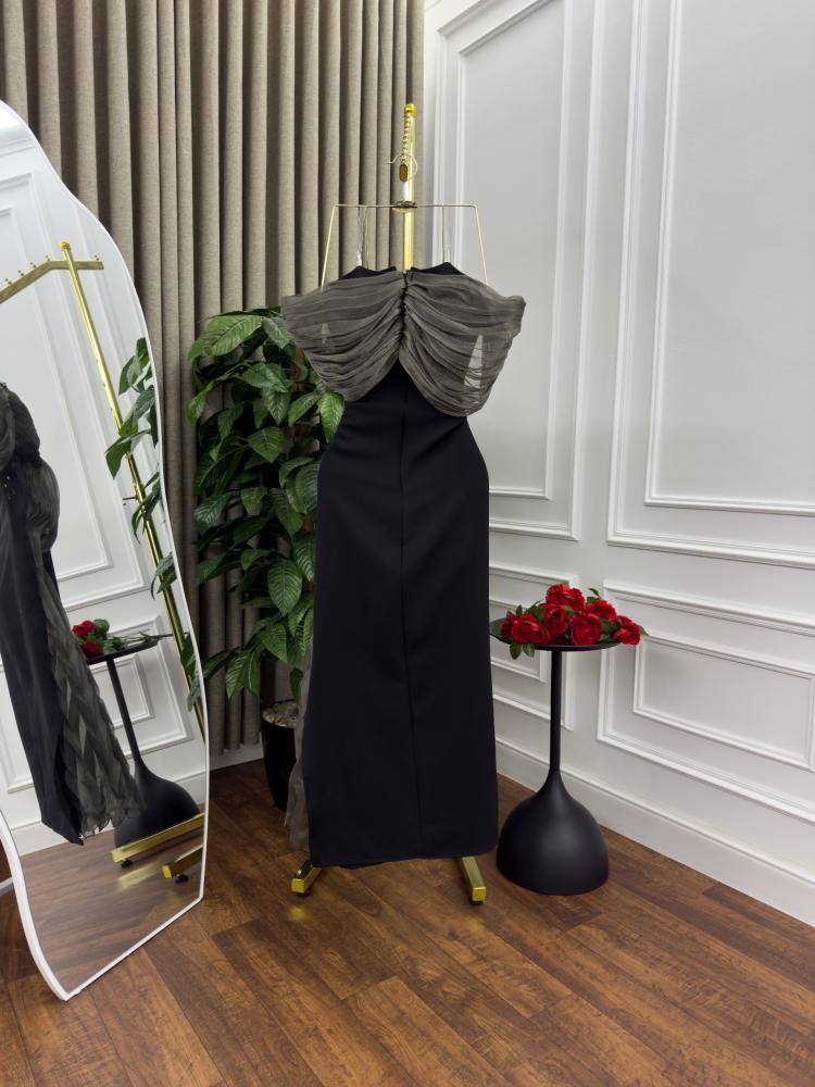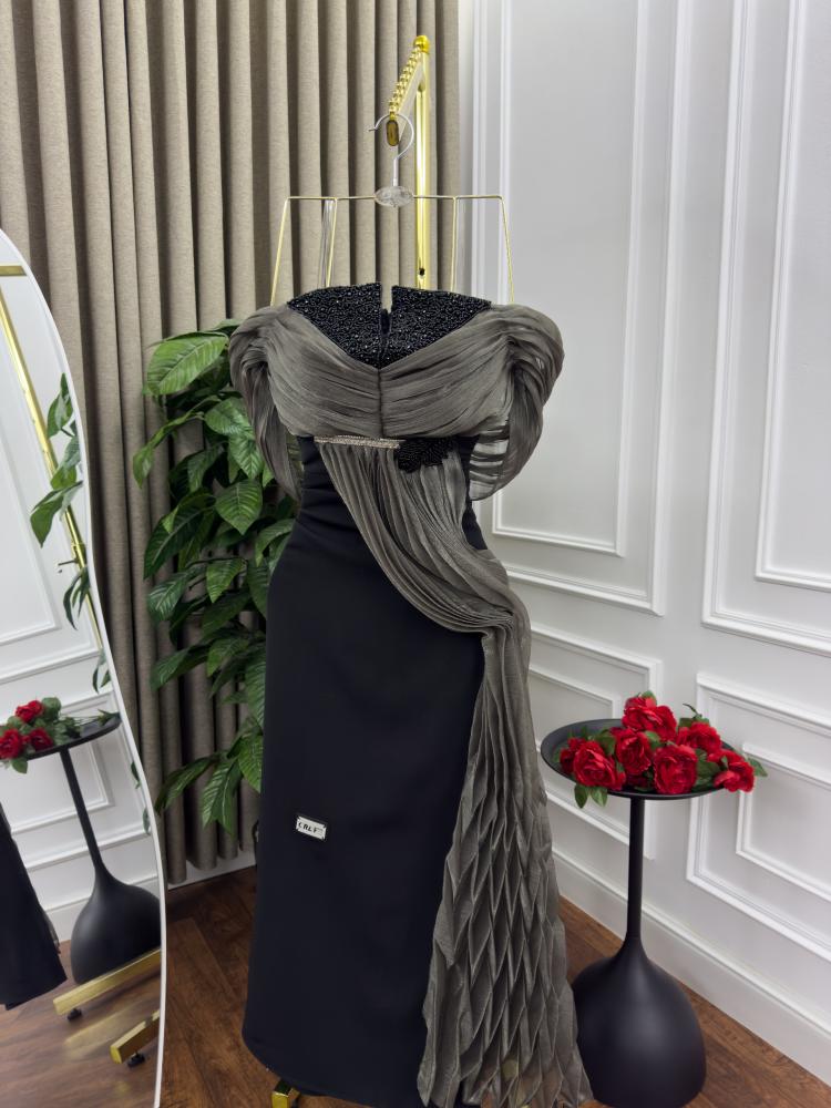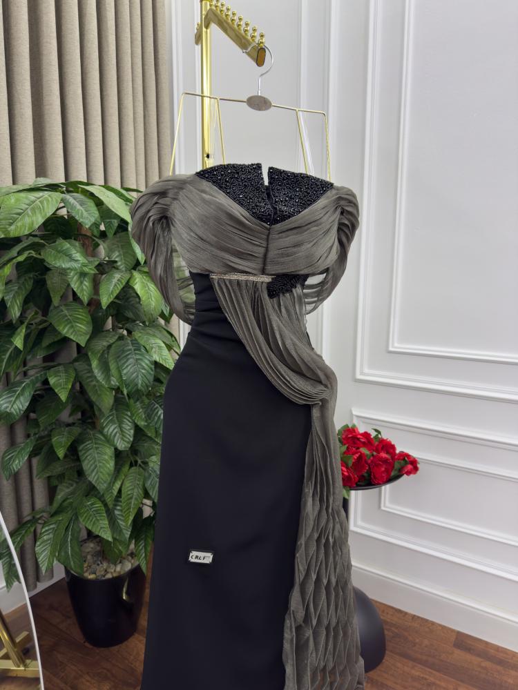 فستان سهره اسود و زيتي ناعم الخامه باربي و كرنكر من متجر جوهره MN